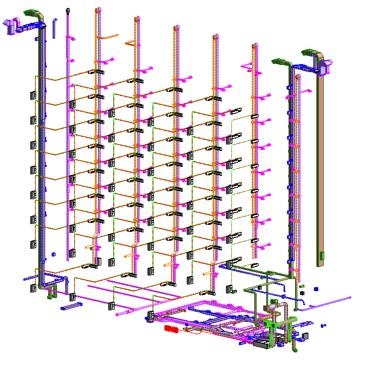 Vypracovanie projektovej dokumentácie v stupni pre stavebné povolenie. V objekte je riešené vetranie bytových priestorov, spoločných priestorov, vetranie CHúC, ale aj vetranie priestorov WELLNESS.